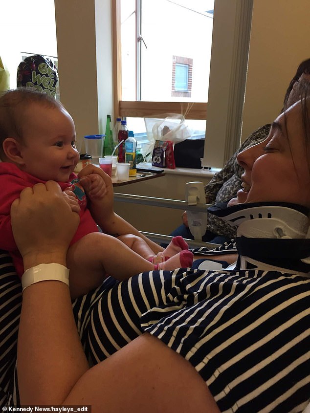 Mrs Black explained that she 'instinctively' yawned and stretched after watching her newborn baby, Amelia, do the same as she waited for her bottle—but after experiencing 'excruciating pain', she instantly realised something was wrong.