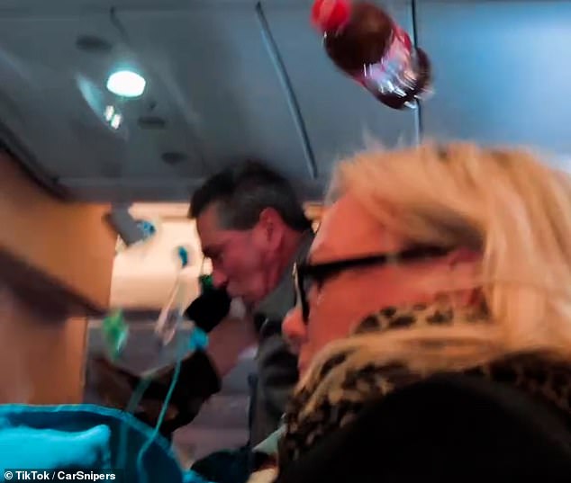 Videos taken from inside the cabin show the moment panic spread, with people heard screaming as flashes of lightning illuminated the inside of the plane.