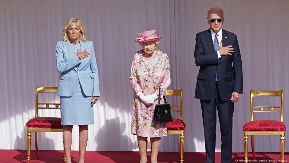 His predecessor, Joe Biden — wearing his signature Ray-Ban aviators — had etiquette experts tut-tutting when he greeted the Queen in 2021.