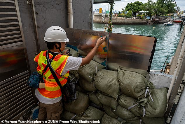 Zoe Chan, in her fifties, piled up sandbags outside her clothes shop in the Wanchai district, saying she expected her business to be 'ruined' by water damage.