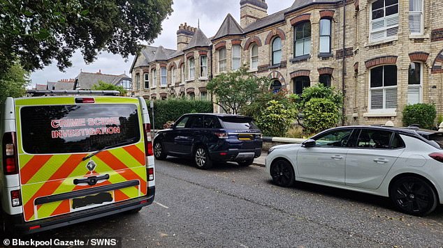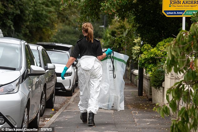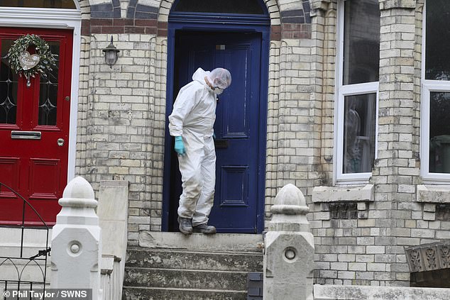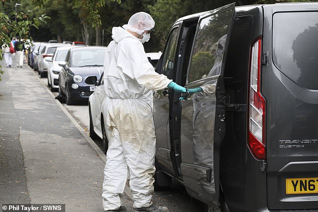 A forensics van was seen parked on the sleepy terraced street while investigators in hazmat suits combed the scene.