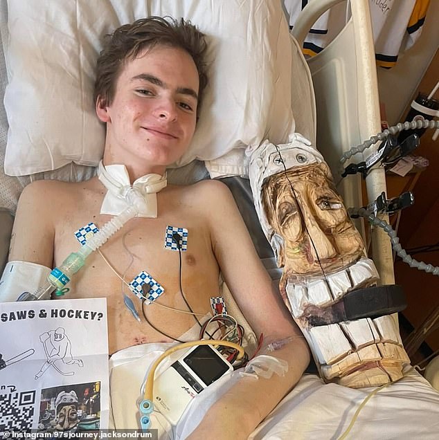 Jackson Drum, 18, damaged his C1 and C2 vertebrae at the base of his skull during the game in January.
