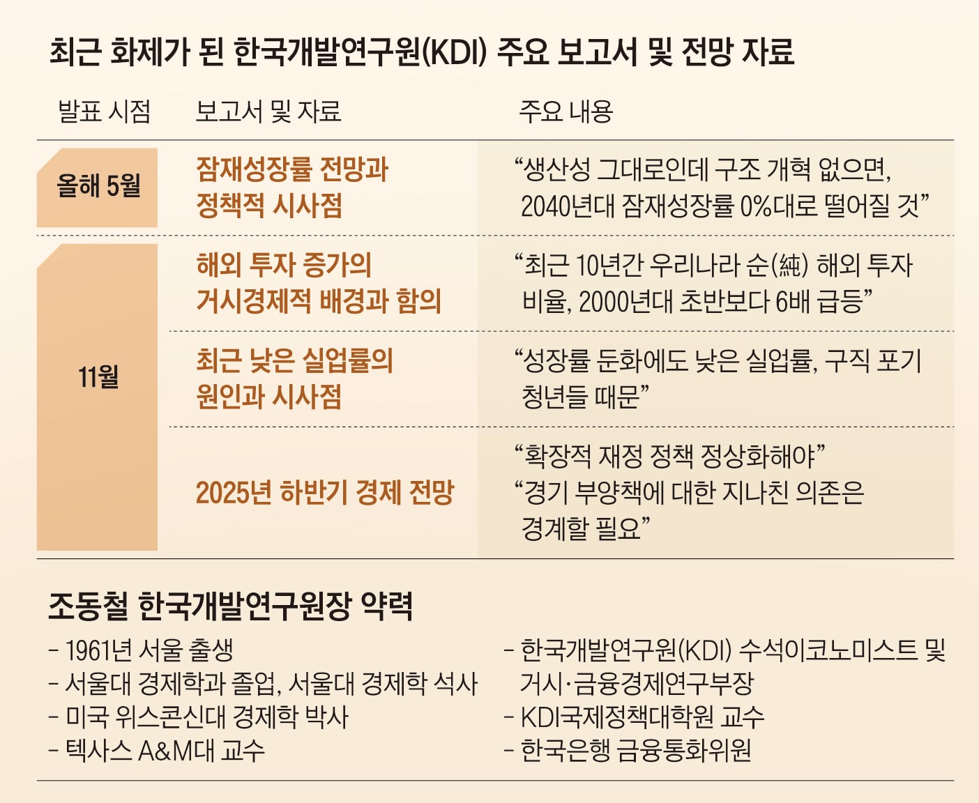 Some believe that KDI's firm position stems from the philosophy of Director Cho Dong-chul, who promotes free research. Director Cho, who assumed his role in December 2022, is an economist with strong ties to KDI, having previously worked as a senior economist, head of the Macroeconomic Research Division, and professor at the Graduate School of International Policy Studies. As someone who deeply understands the role KDI—home to the nation's leading economic experts—should play in the Korean economy, he has created an environment where KDI expresses its views without hesitation. While serving on the Bank of Korea’s Monetary Policy Committee from 2016 to 2020, Director Cho was recognized as a pragmatic and realistic dove (favoring monetary easing). At that time, he strongly criticized the Bank of Korea for its passive approach to interest rate reductions, despite the Korean economy facing slow growth and low inflation.