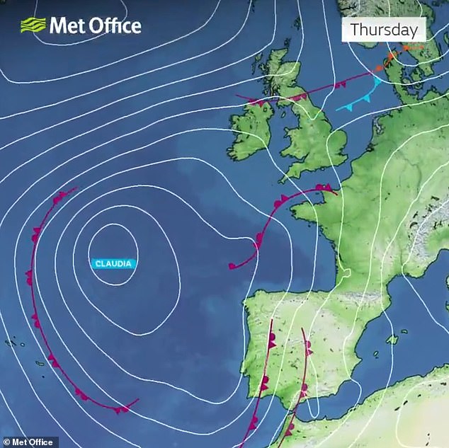 Meteorologists noted that Claudia will not directly pass over the UK, unlike several named storms – however, it will lead to heavy rainfall starting tomorrow.
