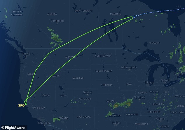 After more than an hour in the air, the crew detected the same issue noted at the airport and, according to FlightAware data, made a U-turn near the US-Canada border, northwest of Winnipeg.