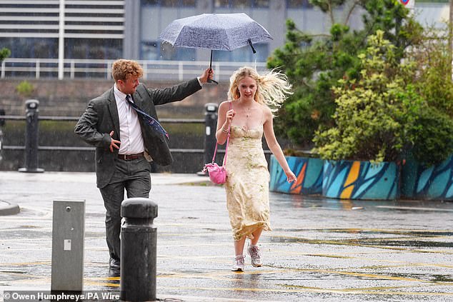 The Met Office said gusty winds, frequent lightning and hail are also likely – while spray and flooding could lead to difficulties for drivers and possible road closures.