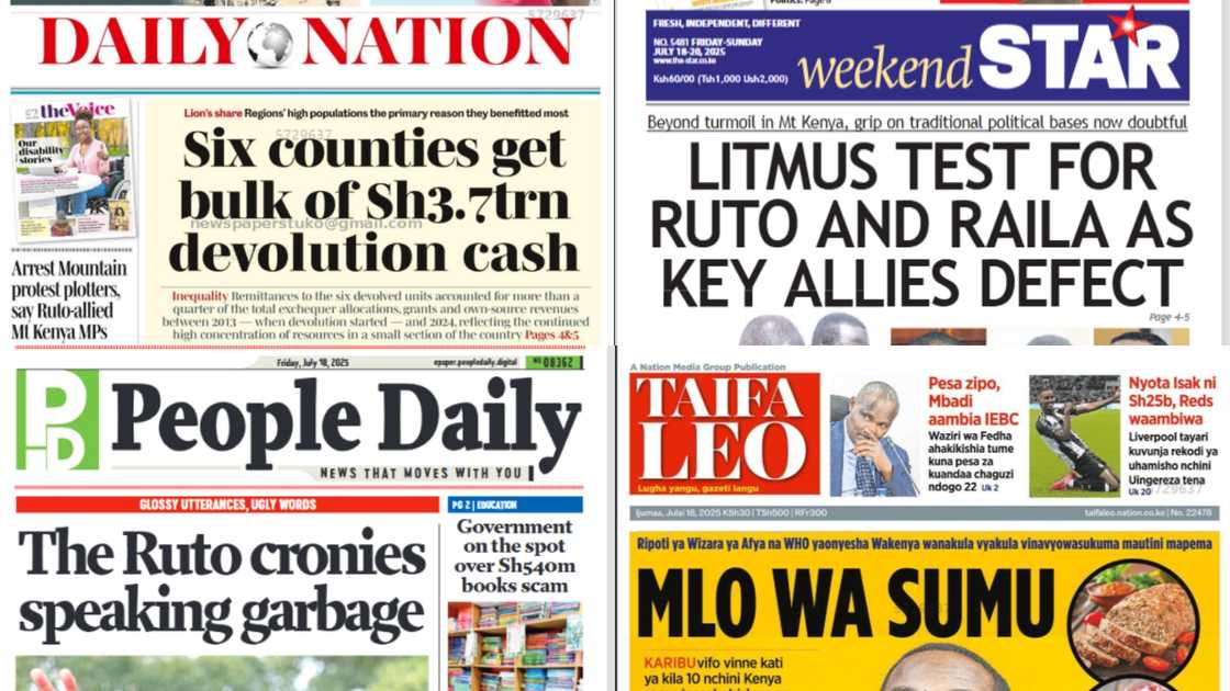 On Friday, July 18, Kenyan newspapers highlighted the political storm facing President William Ruto and Orange Democratic Movement (ODM) leader Raila Odinga.
