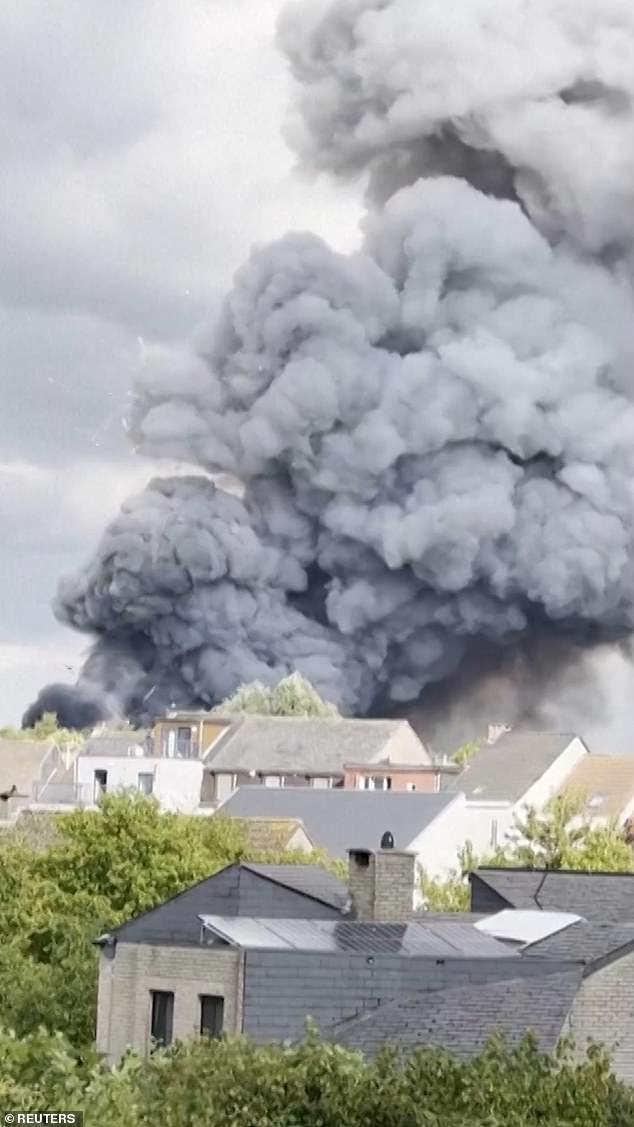 A cloud of dark smoke was seen billowing into the air near a residential area, while fireworks are also seen exploding uncontrollably in different directions into the sky and over houses.